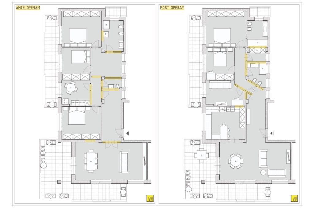 Il progetto risponde all’esigenza della Committenza di voler valorizzare la zona giorno dedicando particolare attenzione alla cucina alla quale viene riservato uno degli ambienti più grandi dell’appartamento.