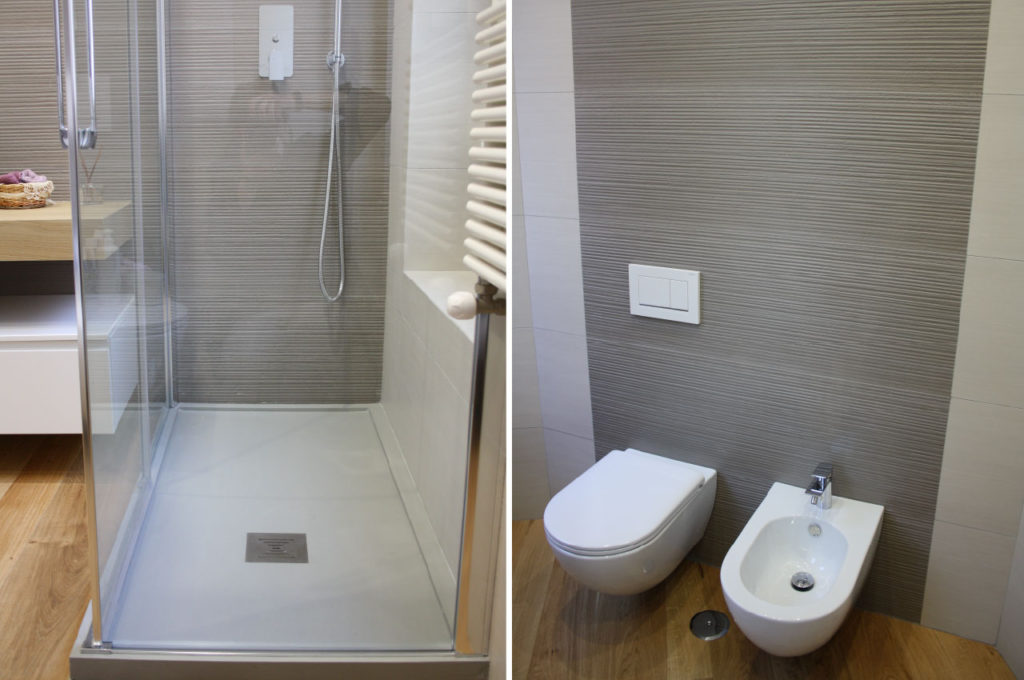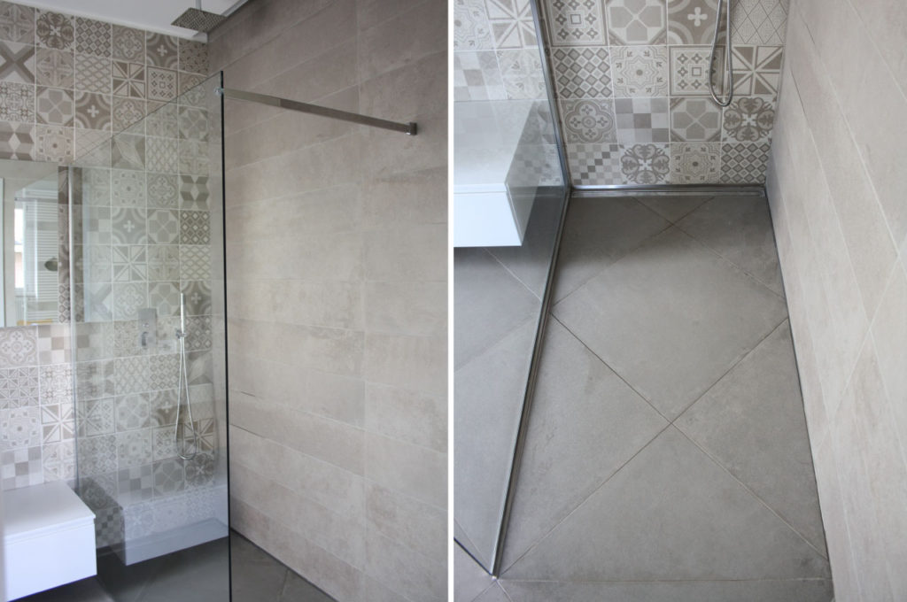 Nel bagno padronale è stata realizzata una doccia a pavimento, in cui la particolare cura dei dettagli tecnici garantisce estetica e funzionalità.